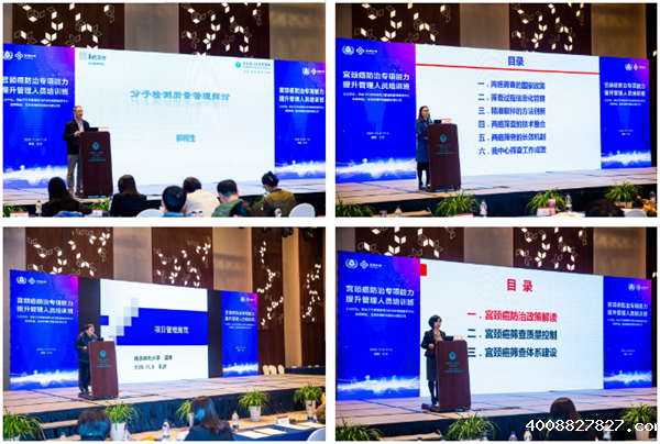 原解放军第302 医院临床检验中心副主任郭桐生教授,南京邮电大学温勇教授,南京市浦口区妇幼保健计划生育服务中心妇保科科长陈晓英,国家基因检测技术应用示范中心宋昆、朱颖鹏分别做“分子检测质量管理探讨 ”、“国家项目管理规范 ”、“宫颈癌筛查智慧医疗体系化建设经验分享”、“智慧医疗宫颈癌精准筛查机制的建设思考”及“宫颈癌筛查高效实施策略”为主题的专题学术交流。
