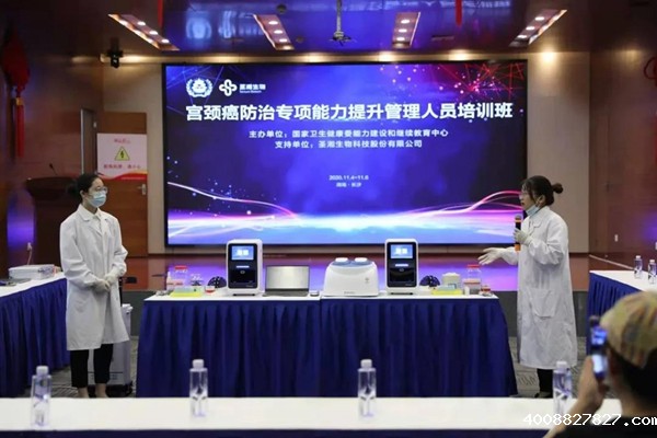 11月6日上午,本次培训班在国家基因检测技术应用示范中心进行了现场教学,技术人员现场展示了HPV核酸检测和AI电子阴道镜辅助诊断技术在宫颈癌筛查中的应用。