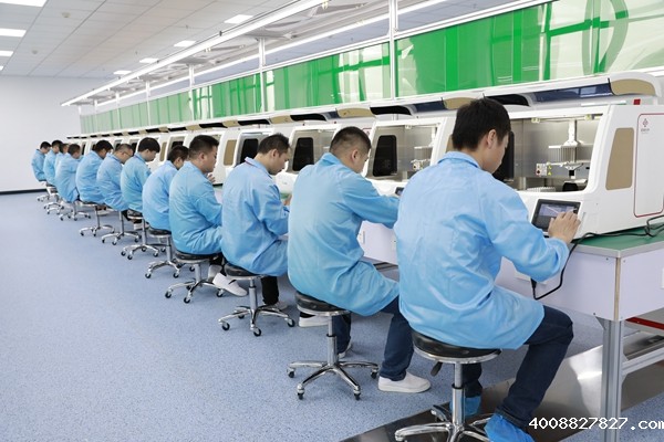 新车间宽敞明亮、整洁有序,自然光透过窗户洒在一排排仪器上,明亮又震撼。生产及检验场地经过相关部门评估审核,符合医疗器械生产管理规范及相关法律法规要求,主要生产Natch 系列产品、全自动产品系列、iPonatic系列产品等各类仪器,年产能近万台。