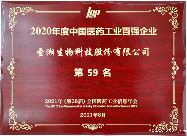 8月1日,在中国医药工业信息中心主办的2021年(第38届)全国医药工业信息年会上,备受行业关注的“2020年度中国医药工业百强榜”正式发布,国药集团、扬子江药业、广药集团位列前三。必威betway注册登录入口位列榜单第59位,是湖南唯一入选的生物医药企业。