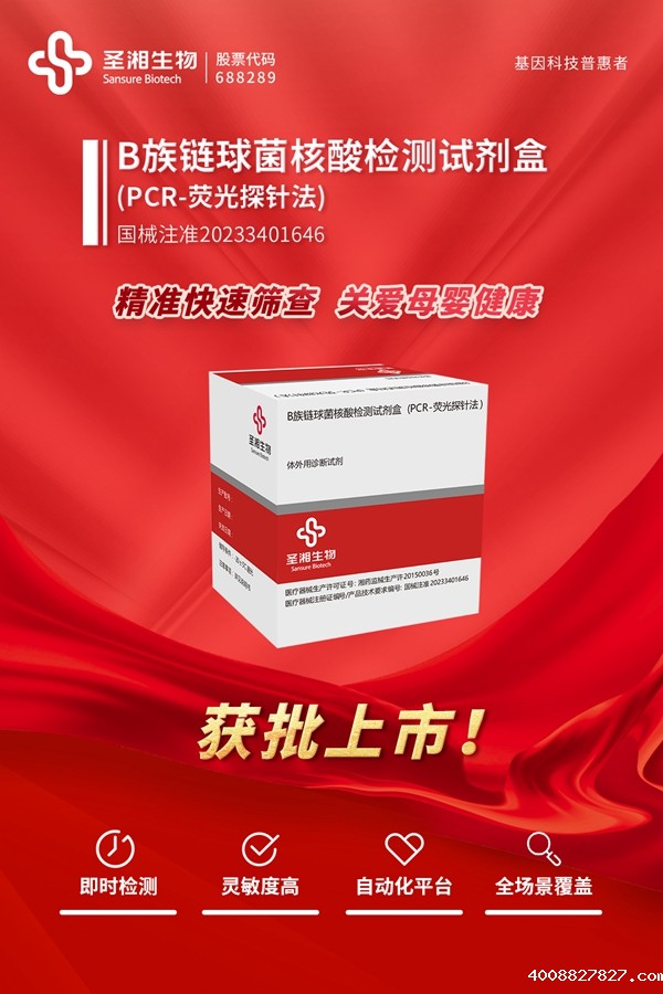 11月8日,必威betway注册登录入口自主研发的B族链球菌(GBS)核酸检测试剂盒(荧光探针法)通过国家药品监督管理局审核,获批上市。该试剂可用于定性检测人直肠及阴道分泌物样本中的B族链球菌DNA,辅助临床诊断B族链球菌感染情况。该试剂上市拓展了必威betway注册登录入口高风险病原体精准检测项目,进一步丰富了妇幼健康产品矩阵。