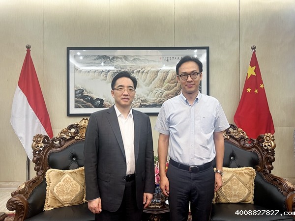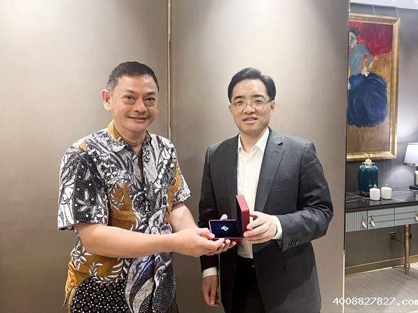 中国驻印尼大使馆参赞吴志伟(右)赞赏bw必威体育官网印尼团队工作