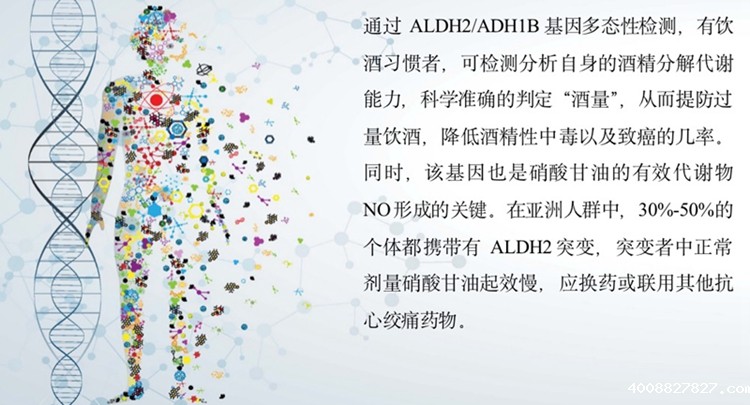 酒是人类历史使用时间最久的饮料,也是人们日常使用最常用的饮料之一,酒精化学名乙醇,人饮酒后乙醇经肠胃吸收进入血液,其中90%~95%通过肝脏进行乙醇代谢,其余随尿液、汗液和呼吸排出体外。肝脏中乙醇代谢主要经过两步个步骤:首先由乙醇脱氢酶将乙醇氧化为乙醛;继而乙醛再通过乙醛脱氢酶的作用催化为乙酸,最终分解为二氧化碳和水排除体外,其中乙醛浓度过高可引起酒精中毒。人体内这两种酶的活性不同,决定了其对乙醇的代谢能力和生理反应也各不相同。研究表明,ALDH2基因1510G>A多态性和ADH1B基因A143G多态性是影响酶活性的主要遗传因子,其突变会使得酶活性降低,乙醇代谢能力减弱,导致饮酒后血液中乙醇或乙醛浓度升高,从而引起酒精性中毒、酒精性肝病、消化道癌症等疾病关。